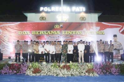 PATI -Mewakili Dandim 0718/Pati Kasdim Pati Mayor Cpl Ari Eko Prasetio, S.T bersama seluruh Perwira jajaran Kodim Pati mengikuti acara doa bersama yang digelar di Mapolresta Pati. Acara digelar hari Kamis, 25 April 2024 pukul 17.45 WIB hingga pukul 19.25 WIB bertempat di Masjid Al-Ikhlas Mapolresta Pati. Rangkaian acara diawali dari sholat magrib berjamaah dilanjutkan doa bersama lintas agama dalam rangka mewujudkan keamanan dan kedamaian negeri yang diikuti berbagai elemen masyarakat serta instansi TNI, Polri, Pemda, Tokoh agama, tokoh masyarakat kabupaten Pati. Hadir dalam kegiatan tersebut Pj Bupati Pati Henggarae Budi Anggoro, S.T., M.T, Kapolresta Pati Kombes Pol Andhika Bayu Adhittama, S.I.K., M.H., Dandim 0718/Pati diwakili Kasdim 0718/Pati Mayor Cpl Ari Eko Prasetio, S.T., Wakapolresta Pati AKBP Dandy Ario Yustiawan, S.I.K, ketua MUI Prof. Dr. Kh. Abdul Karim serta undangan terkait. Maksud dan tujuan kegiatan adalah untuk mempererat silaturahmi antar intansi dan masyarakat guna...